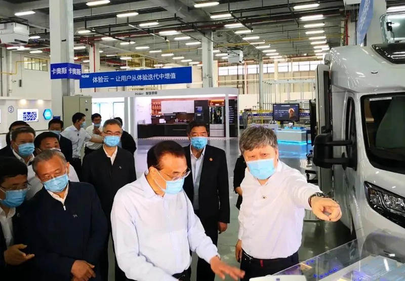 ▲6月2日,李克强总理到海尔视察,听到了海尔工业互联网平台COSMOPLAT的介绍。该平台的综合能源管理部分由跨界跨境供应链(广州)有限公司提供。
